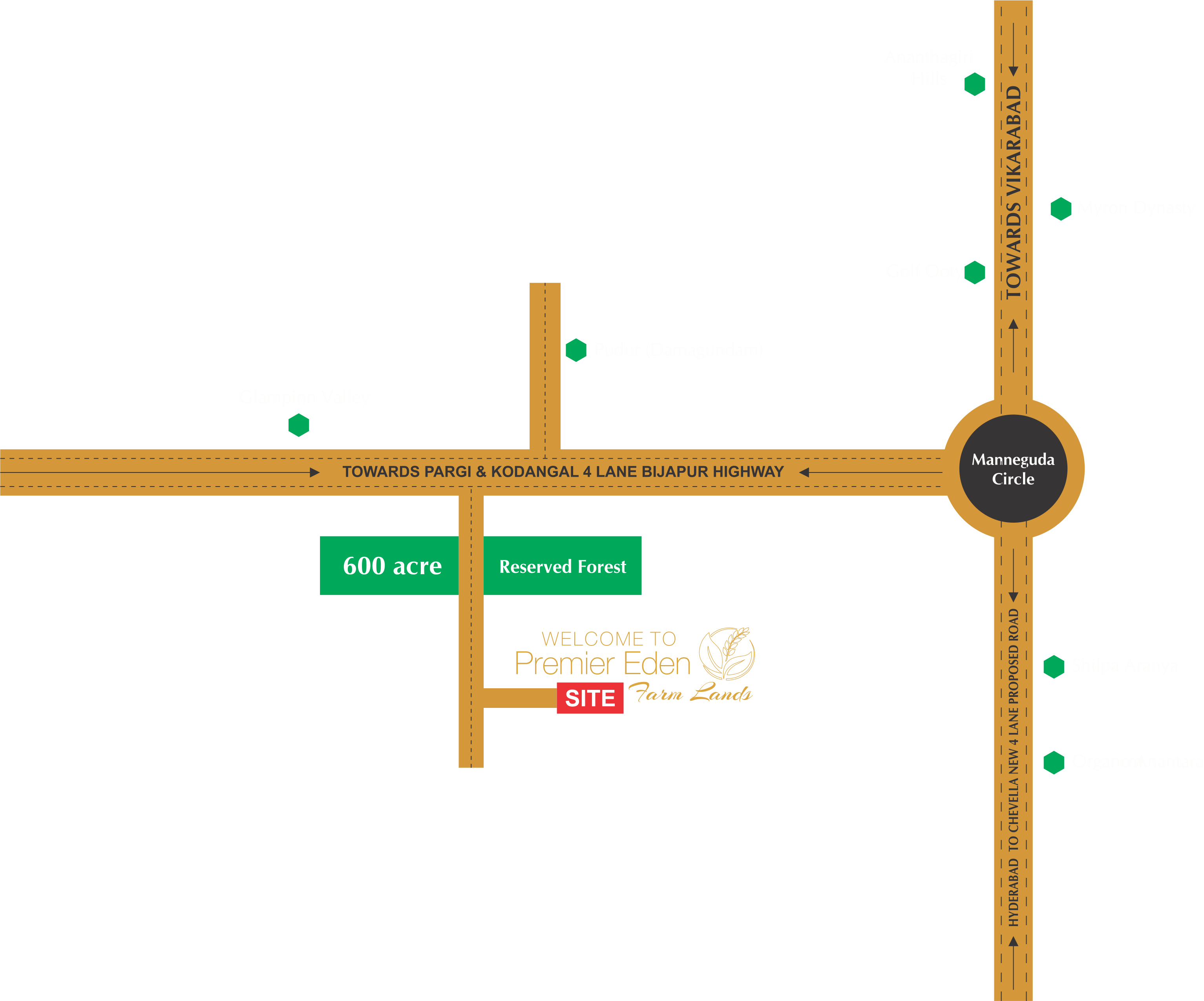 Welcome to Premier Eden Farms a thoughtfully crafted farmland community where pure nature, modern planning, and long-term value come together. Surrounded by expansive reserved forest and inspired by the serenity of the Ananthagiri region, Premier Eden Farms is more than land-it's a lifestyle rooted in peace, sustainability, and smart investment.